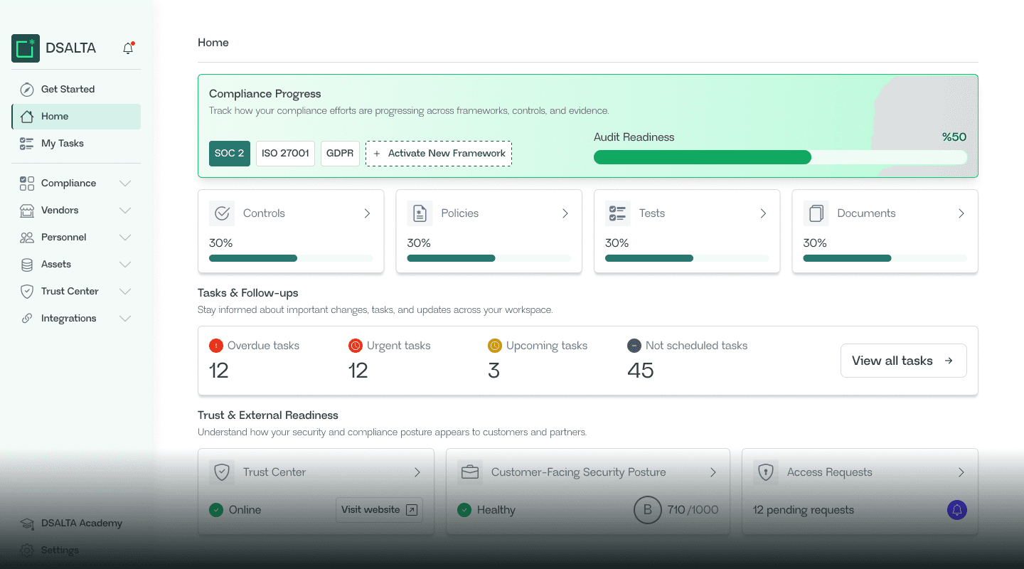 DSALTA brings together everything modern teams need to manage compliance, security, and trust.