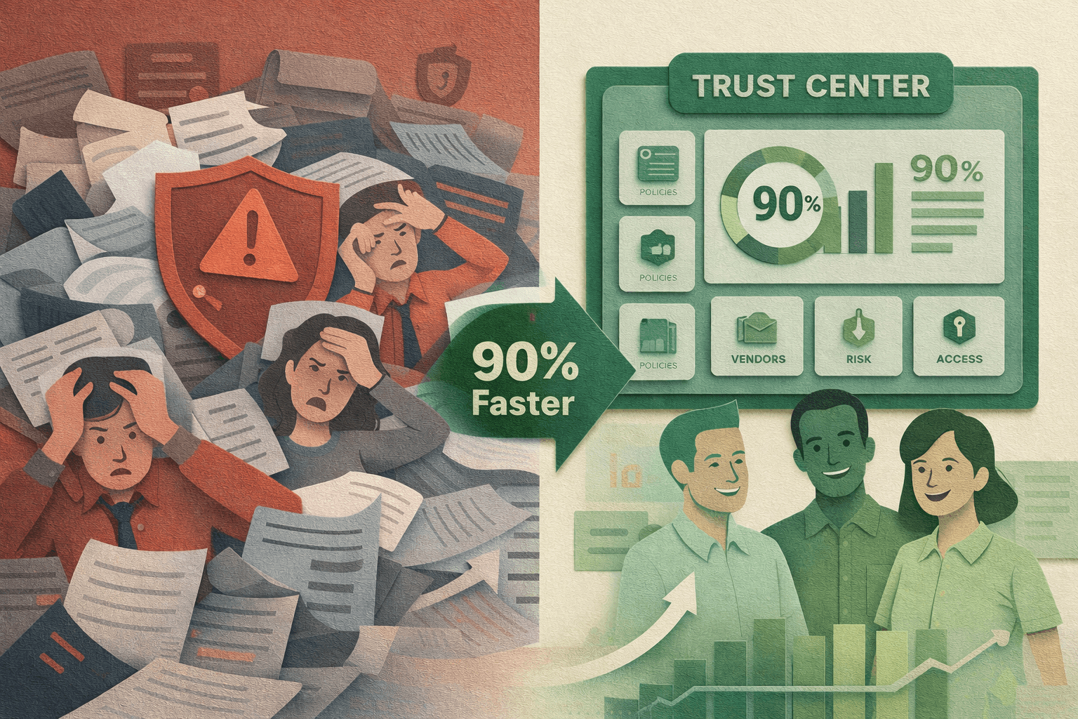 The solution: A trust center that lets prospects self-serve security information, backed by automated compliance monitoring that keeps everything current.
