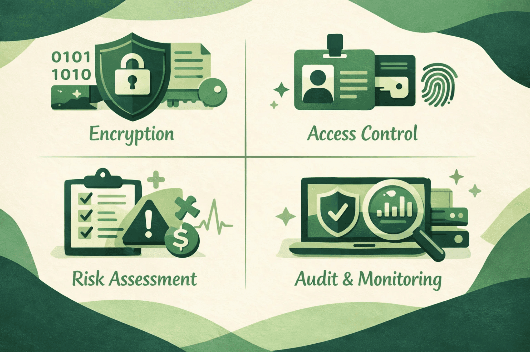 Technical Safeguards: implementing access controls, encryption, audit logs, and secure communication channels for transmitting patient data.