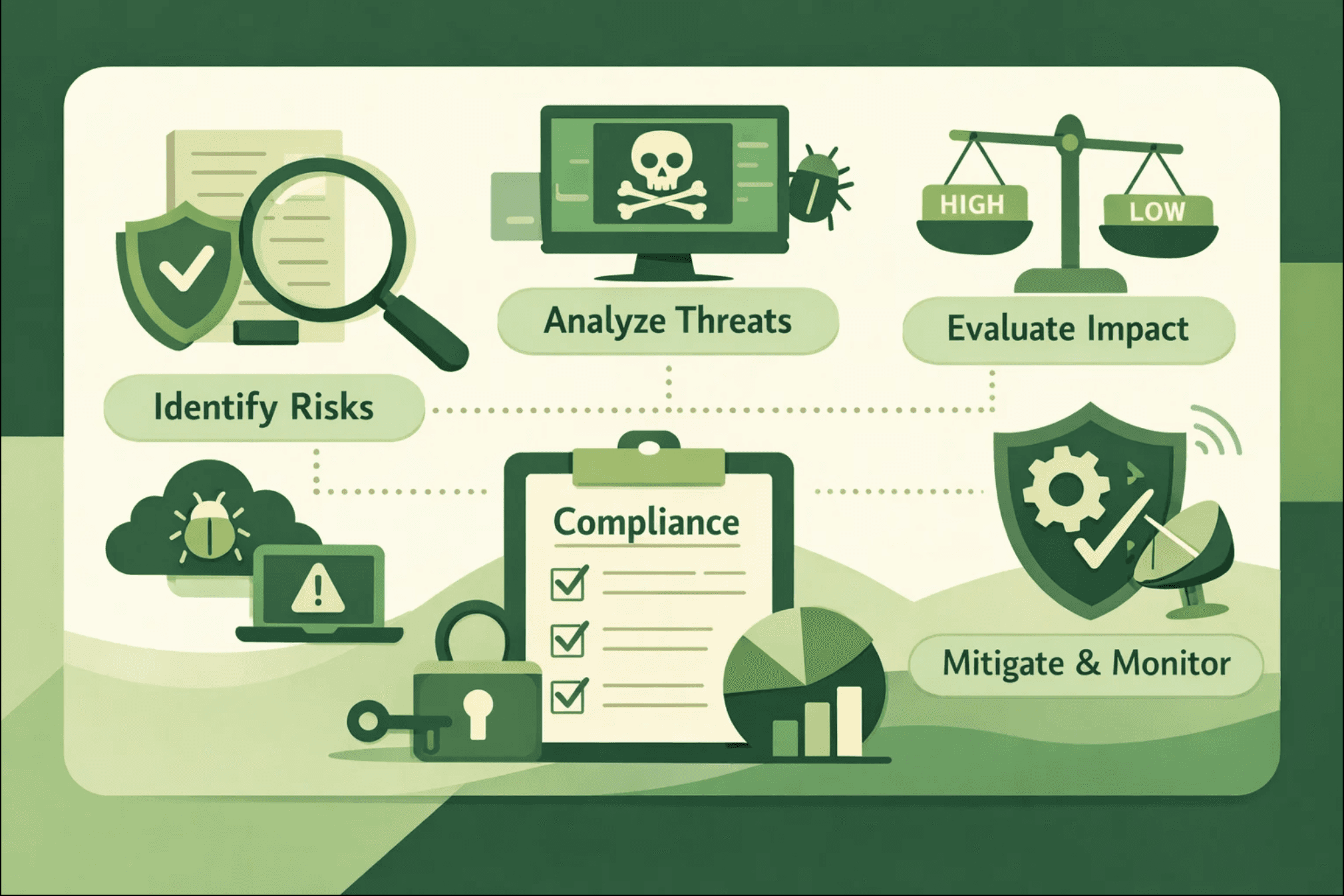 Calculate risk ratings combining likelihood and impact into overall risk scores. This prioritization drives where you invest security resources.