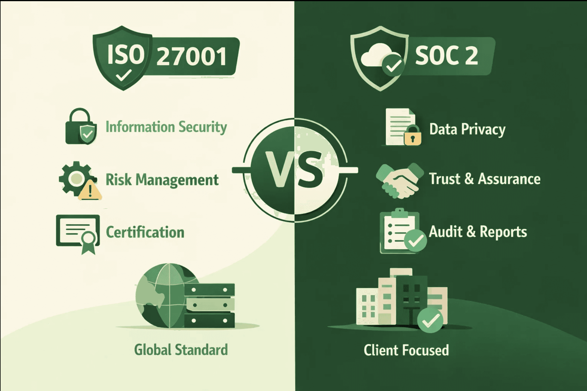 Organizations should understand the fundamental distinctions between ISO 27001 and SOC 2 before selecting appropriate compliance solutions. The following guide helps you select appropriate standards according to your business targets and customer requirements.