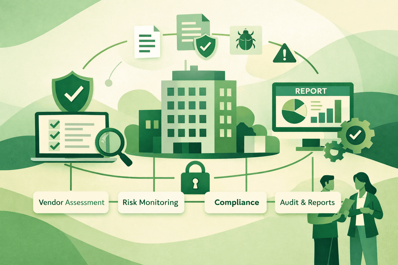 Vendor risk management software centralizes all vendor information, automates assessment workflows, continuously monitors vendor security posture, alerts you to expiring documentation, and generates audit-ready evidence for compliance frameworks.